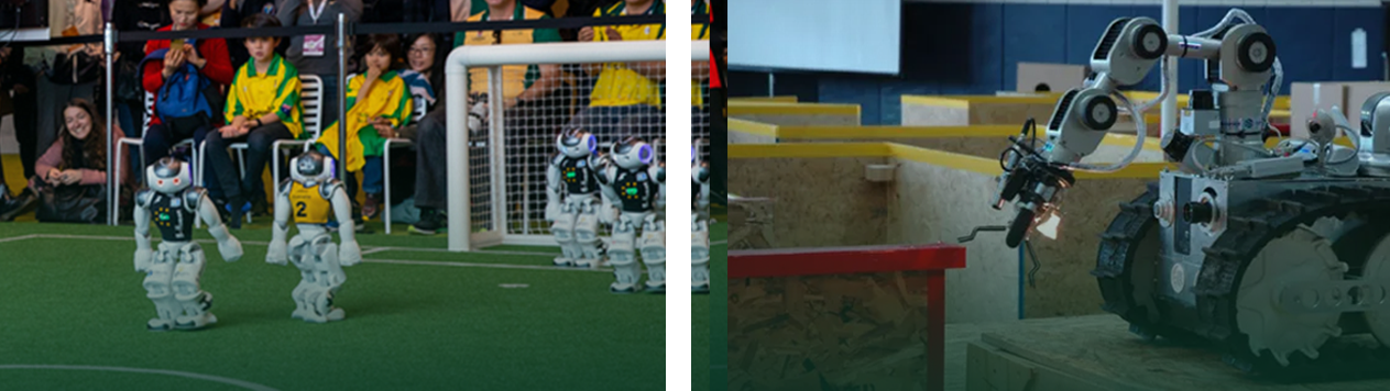 In RoboCupJunior Soccer challenges, teams are required to design, build, and program two autonomous robots that compete in a fast-paced game of robot soccer against an opposing pair. These robots must navigate the field, track the ball, and strategize their movements independently, without any human intervention. The competition provides a dynamic and engaging platform for students to develop and apply skills in mechanical design, electrical engineering, and artificial intelligence, fostering creativity, teamwork, and problem-solving in a real-world context.